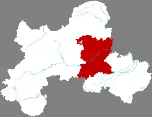 Городской уезд делится на 2 уличных комитета, 19 посёлков и 2 волости.