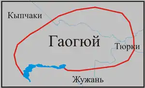 В результате разгрома государства Юэбань в 490 году гаогюйцы образовали своё государство в Восточном Казахстане. Делилось на две части, северный правитель носил титул «Небесный император», южный — «Наследный государь». Однако уже через 6 лет южная часть Гаоцзюя была разгромлена и попала под власть жужаней. Северная часть Гаоцзюй просуществовала ещё 45 лет и в 540 году была разгромлена жужанями.