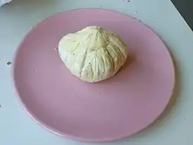 Головки сыра имеют форму приплюснутого шара или купола диаметром 8—9 сантиметров, высотой 6—9 сантиметров и весом от 300 до 500 грамм. Головка покрыта сухой и жёсткой коркой с налётом натуральной белой плесени. Под коркой находится плотная, упругая и эластичная мякоть с вкраплениями чеснока и перца. Цвет мякоти в зависимости от сезона может варьироваться от цвета слоновой кости до бледно-жёлтого. Мякоть отличается низким содержанием жира[2][3].