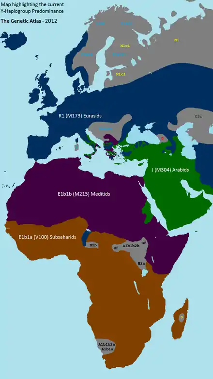 Гаплогруппа R1 — наиболее распространенная подгруппа Гаплогруппы R, отмеченная мутацией M173. Её два основных субклада R1a (M17) и R1b (M343) (прочие варианты встречаются исключительно редко) являются наиболее распространёнными во всей Европе и западной Азии. Это связано с переселениями после последнего ледникового максимума.