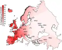 Распространенность гаплогруппы R1b | |