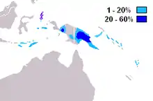 Гаплогруппа S (K2b1a) в основном распространена в горах Новой Гвинеи. Реже встречается также на прилегающих территориях Западного Ириана и Меланезии.