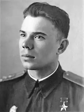 Указом Президиума Верховного Совета СССР «О присвоении звания Героя Советского Союза начальствующему составу авиации дальнего действия Красной Армии» от 31 декабря 1942 года за «образцовое выполнение боевых заданий командования на фронте борьбы с немецкими захватчиками и проявленными при этом отвагу и геройство» удостоен звания Героя Советского Союза с вручением ордена Ленина и медали «Золотая Звезда» (№ 773)[1][4].