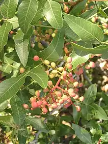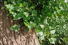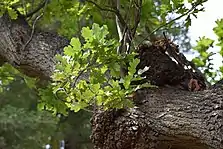 Типичные растения заповедника (слева направо): 1) дуб черешчатый; 2) тополь чёрный; 3) шелковица белая; 4) гребенщик ветвистый; 5) Smilax excelsa. | ||||||||||