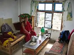 К северо-востоку от монастыря на холме находится восстановленный чортен.[4]