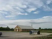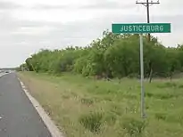 | Здание церкви в Джастисбурге | Железнодорожный переезд в восточной части Саутленда | Придорожный знак на границе Джастисбурга |