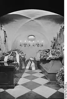 - До 1943 года. После долгих скитаний прах Фридриха Вильгельма I в конце концов был захоронен в 1991 году в мавзолее императора Фридриха во Фриденскирхе в парке Сан-Суси.