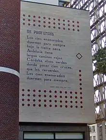 - В 2005 году стихотворение Гарсиа Лорки «De profundis» было нанесено на стену одного из зданий в центре Лейдена (Нидерланды). Оно стало последним в серии из ста одного аналогичного памятника всемирно известным поэтам в рамках культурного проекта «Wall poems».[20]