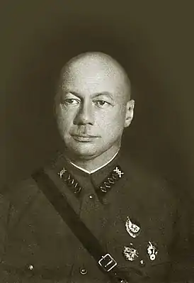 ![]() начальник Академии связи им. В. Н. Подбельского (служебная категория К-14) В. Е. Гарф. (снимок до ноября 1935 г.) | |