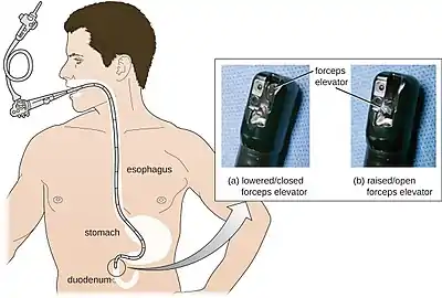 Врач по ходу проведения эндоскопа рассматривает поверхность пищевода, желудка и двенадцатиперстной кишки. При наличии специального оборудования проводится фото- или видеофиксация исследования, при наличии показаний может быть выполнена биопсия с помощью специальных биопсийных щипцов, вводимых в канал эндоскопа, также по показаниям проводят лечебные манипуляции: остановку кровотечения, удаление неоплазий, введение лекарственных средств.