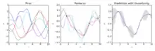 Гауссовский процесс может быть использован как априорное распределение вероятностей функций в байесовском выводе.[5][8] Для любого множества из N точек в нужной области функций возьмите многомерное гауссовское распределение, ковариационный матричный параметр которого является определителем Грама взятых N точек с некоторым желаемым ядром, и выборку из этого распределения.