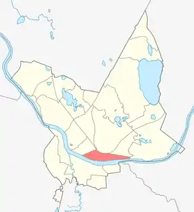 Границы района проходят по ул. 18 Ноября (от реки до железной дороги), по железной дороге на восток, от неё восточнее дома № 66 по ул. Нометню до реки, далее по берегу Даугавы до начала ул. 18 Ноября. Соседние районы: Центр (на северо-западе), Новое Строение (на севере), Черепово (на востоке) и Грива (на юге, за рекой).