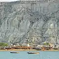 Рыбацкие лодки в восточном заливе Гвадара на фоне холмов Кох-э-Мехди