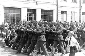 ![]() Парад подразделений РОА в Пскове 22 июня 1943 года | |
