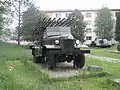 ![]() БМ-13Н на шасси Studebaker US6 (с опущенными бронеплитами защиты от выхлопа) в Центральном музее Великой Отечественной войны в Москве | |
