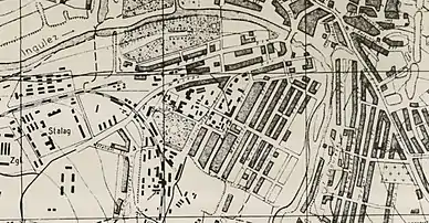 С началом Великой Отечественной войны завод «Коммунист» был эвакуирован. В период оккупации здесь, близ современной школы № 29, располагался немецкий концлагерь шталаг 338[6], на территории военного городка № 1.