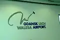 В 2004 году аэропорт получил имя Леха Валенсы, бывшего президента Польши. На стене терминала со внешней стороны можно видеть подпись Леха Валенсы: стилизованная «W».
