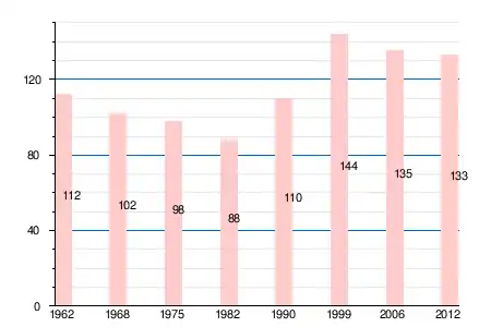 | 1962 | 1968 | 1975 | 1982 | 1990 | 1999 | 2006 | 2008 | 2011 | 2012 |