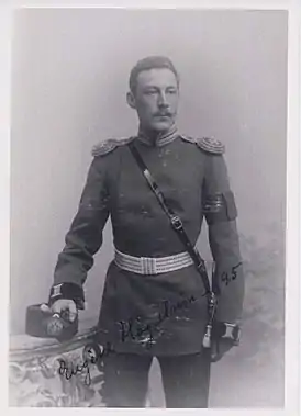 В 1892 году получил образование в Финляндском кадетском корпусе и вступил в службу в 1895 году подпоручиком Туркестанской артиллерийской бригады. В 1898 году произведён в поручики, в 1892 году в штабс-капитаны, в 1906 году в капитаны.