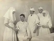 ![]() Вера Гедройц с больными | |