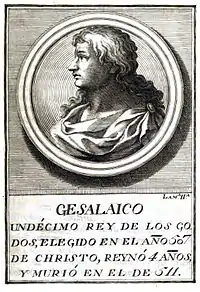 | готск. 𐌲𐌰𐌹𐍃𐌰𐌻𐌰𐌹𐌺𐍃 (Gaisalaiks), лат. Gesalecus, Gisalecus | |
