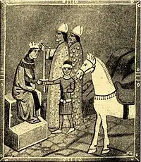 ![]() Король Геза II. Буквица из Венгерской иллюстрированной хроники | |