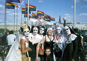 Хотя представители ортодоксальных течений и религиозные консерваторы часто высказываются о недопустимости проведения гей-парадов[103][104], существуют различные церкви и деноминации, выступающие в защиту прав ЛГБТ, а также религиозные организации, объединяющие ЛГБТ-верующих, которые принимают участие в гей-парадах[105][106].