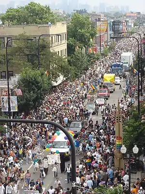 Такая демонстрация повторилась в следующем году и впоследствии стала ежегодным нью-йоркским гей-парадом[4][5]. Летом 1970 года аналогичные выступления также прошли в других американских городах: Чикаго, Лос-Анджелесе[19], Сан-Франциско[20], Атланте[21] и канадском Торонто[6][22]. Постепенно на волне интенсивно растущего движения геев и лесбиянок за гражданские права годовщина Стоунволлских бунтов стала отмечаться по всей территории США и Канады[5]. Первые гей-парады зачастую были малочисленны и вызывали протесты консерваторов, а их проведению препятствовали власти[4][6]. Однако по мере признания обществом прав ЛГБТ-сообщества в контексте общегражданского равенства гей-парады потеряли свой конфронтационный характер[23].