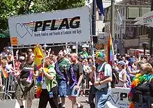 Постоянным участником гей-парадов является некоммерческая организация «Родители и друзья лесбиянок и геев» (англ. PFLAG — Parents and Friends of Lesbians and Gays), объединяющая членов семьёй лесбиянок, геев, бисексуалов и трансгендерных людей, а также их друзей. PFLAG имеет более 500 филиалов и около 200 000 членов и сторонников в Соединённых Штатах и 11 других странах[92][93][94][95].