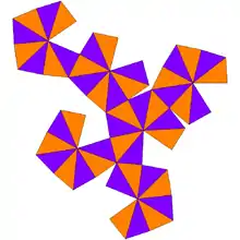 Составлен из 48 одинаковых разносторонних остроугольных треугольников с углами и