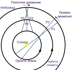 - Движение вокруг Солнца с периодом в год, приводящее к попятным движениям планет;