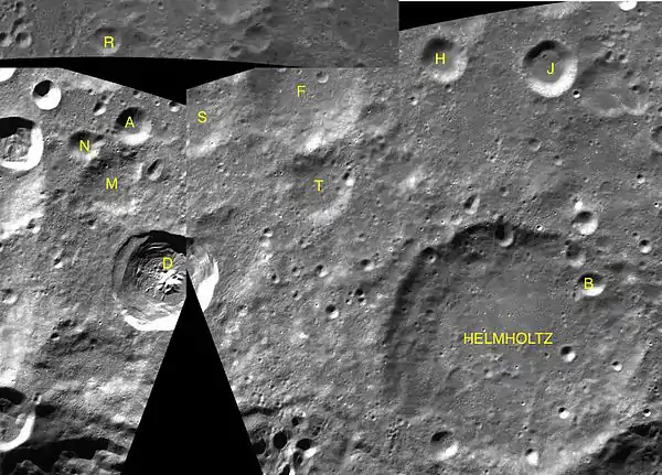 - Образование сателлитного кратера Гельмгольц D относится к эратосфенскому периоду[1].