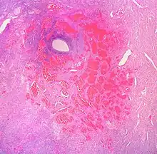 Гемангио́ма (от греч. haima — кровь + angeion — сосуд + -oma) — доброкачественная опухоль, состоящая из самостоятельно инволюционирующих эндотелиальных клеток кровеносных сосудов[2].