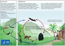 Естественными носителями вируса Эбола являются крыланы (лат. Pteropodidae). Как полагают, они способны распространить вирус, будучи не затронутыми ими[10].
