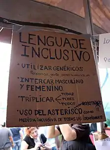 Гендерно-нейтральный (или гендерно-инклюзивный) язык — это язык, который избегает предвзятого отношения к определенному полу или социальному гендеру. В английском языке это включает использование существительных, не связанных с полом, для обозначения социальных ролей или профессий. Приветствуется формирование фраз на равноправной основе и прекращение обобщенного использования мужских терминов[1]. Например, слова полицейский и стюардесса являются названиями должностей, зависящими от пола; следует использовать соответствующие нейтральные в гендерном отношении термины или синонимы. Другие гендерные термины могут быть заменены первоначально мужским термином и использоваться независимо от пола. В русском языке альтернативой этому служит использование феминитивов. Примером отказа от безоговорочного использования форм мужского и женского рода являются также гендерно-нейтральные местоимения, такие как they/them, использующиеся в английском языке для обращения к лицам с небинарной гендерной идентичностью[1].