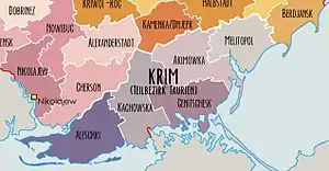 - Каховский округ (укр. Каховський ґебіт, нем. Kreisgebiet Kachowka).