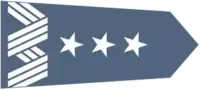 Знаки различия — генеральское шитьё (зигзаг) и три звезды на головном уборе, рукавах мундира и выше нагрудного кармана полевой формы.