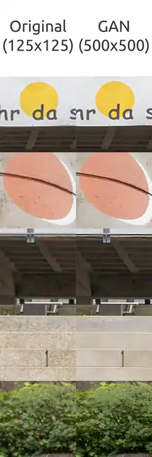 Использование этой техники позволяет в частности генерировать фотографии, которые человеческим глазом воспринимаются как натуральные изображения. Например, известна попытка синтезировать фотографии кошек, которые вводят в заблуждение эксперта, считающего их естественными фото[2]. Кроме того GAN может использоваться для улучшения качества нечётких или частично испорченных фотографий.