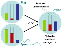 Работе Менделя предшествовали другие теории наследования. В XIX веке была популярна теория слитной наследственности, предложенная в работе Чарльза Дарвина «Происхождение видов» 1859 года, согласно которой индивиды наследуют среднее значение черты от своих родителей[12]. Однако работа Менделя предоставила примеры, где признаки не смешивались после гибридизации, показывая, что признаки формируются комбинациями различных генов, а не их смесью. Теперь смешивание признаков в потомстве объясняется действием множества генов с количественные эффектами. Другой теорией, получившей некоторую поддержку, стала теория наследования приобретенных характеристик, говорящая о том, что люди наследуют черты, укрепленные их родителями. Известно, что эта теория, обычно ассоциируемая с Жаном-Батистом Ламарком, неверна, так как опыт отдельных людей не влияет на гены, которые они передают своим детям[13]. Хотя доказательства в области эпигенетики возродили некоторые аспекты теории Ламарка[14]. Другие теории включали пангенезис Чарльза Дарвина и её трактовку Фрэнсисом Гальтоном[15].