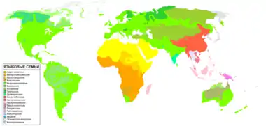 Всего насчитывается около 420 языковых семей[3], более 100 изолятов и более 100 неклассифицированных языков. Семьи нередко объединяются в единицы более высокого уровня — макросемьи (филы, англ. phylum), однако в настоящее время существование большинства из них продолжает оставаться лишь научной гипотезой, требующей дальнейшего подтверждения. Надёжное обоснование получили лишь теории о существовании нигеро-конголезской и афразийской макросемей.