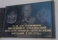 - Де Геннину установлена мемориальная доска в Петрозаводске.