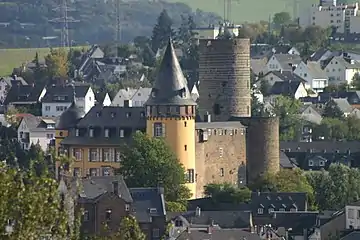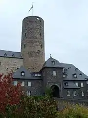 Высота главной башни (бергфрид) составляет 34 метра. Толщина стен в её основании достигает 3,7 метра. Диаметр башни составляет 10,34 метра. Раньше первом этаже находились две темницы. Сохранившиеся документы свидетельствуют, что здесь содержали не только уголовных преступников и политических врагов, но и женщин, обвиняемых в колдовстве. В частности в XVI веке в тюрьме в ожидании казни находились те, кого считали ведьмами. На самом башни оборудована смотровая площадка.