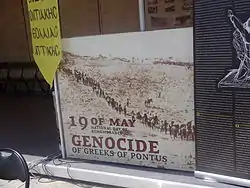 Геноцид был инициирован правительством Османской империи против греческого населения империи и включал в себя резню, принудительную депортацию, включавшую в себя марши смерти, сводные высылки, деспотичные наказания, а также разрушением православных культурных, исторических и религиозных памятников. По данным различных источников, несколько сотен тысяч османских греков погибли во время этого периода[2]. Большинство беженцев и пострадавших бежали в Грецию (в общей сложности беженцы составили более четверти населения Греции до их начала)[3]. Некоторые, особенно жители в восточных провинций, укрылись в соседней Российской империи. Таким образом, к концу греко-турецкой войны 1919—1922 годов, большинство греков Малой Азии бежали или были убиты[4]. Оставшиеся были переданы Греции в соответствии с условиями обмена населением между Грецией и Турцией в 1923 году, который оформил исход и сделал невозможным возвращение беженцев. Другие этнические группы Османской империи также подверглись геноциду в этот период, в том числе ассирийцы и армяне, и некоторые учёные и организации признали эти события как часть одной политики геноцида[5][6][7][8][9][10][11][9].