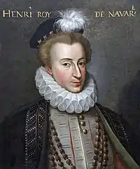 Генрих (Анри) IV (Генрих Наваррский, Генрих де Бурбон, фр. Henri IV, Henri le Grand, Henri de Navarre; 13 декабря 1553, По, Беарн — 14 мая 1610, Париж) — лидер гугенотов в конце Религиозных войн во Франции, король Наварры с 1572 года (как Генрих III), король Франции с 1589 года (формально — с 1594), основатель французской королевской династии Бурбонов.