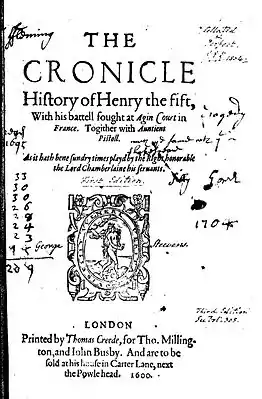 ![]() Титульный лист одного из прижизненных изданий «Генриха V» | |