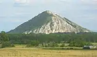 Горы-шиханы: Тратау (402 м) Юрактау (336 м), Куштау (371 м), Шахтау (срыта до основания) — останки коралловых рифов Пермского периода.
