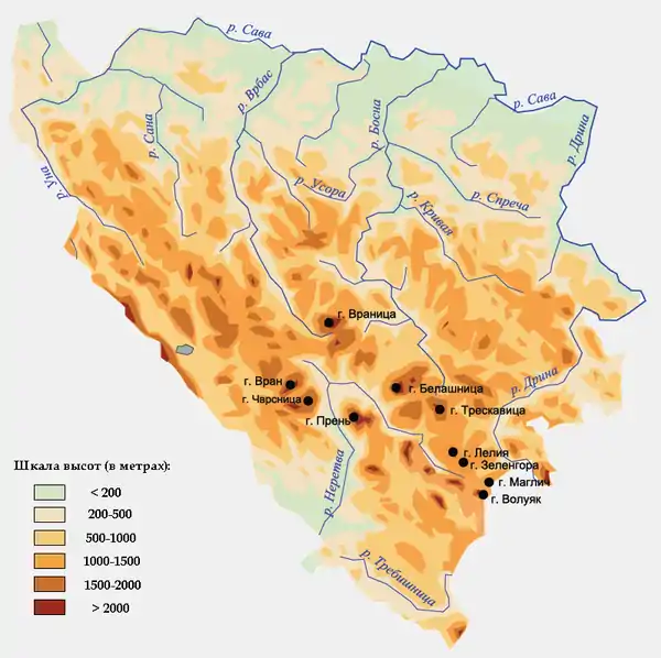 ![]() Физико-Географическая карта Боснии и Герцеговины | |