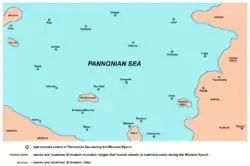 Детальная карта юго-восточного части Паннонского моря (современная территория Воеводины) в течение Миоценовой эпохи.