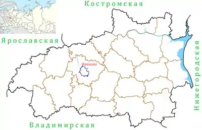 Ивановская область расположена в центре европейской части России. Большая часть лежит в междуречье Волги и Клязьмы. Площадь — 21 437 км² (одна из самых маленьких областей России, больше только Калининградской). Граничит с Владимирской, Нижегородской, Костромской и Ярославской областями. Протяженность территории с севера на юг — 158 км, с запада на восток — 230 км.