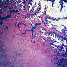 На севере страны расположены южные склоны Альп с высшей точкой Западной Европы горой Монблан (4808 м). В Западных Альпах на территории Италии выделяют Лигурийские и Приморские Альпы, далее на северо-восток тянутся Котские, Грайские и Пеннинские и Лепонтинские Альпы. Крутые склоны этой части системы расчленены узкими и глубокими ущельями, в которых располагаются несколько крупных долинных ледников. Восточные Альпы высотой до 3899 м (гора Ортлес) также имеют оледенение, в основном в массивах Бернина, Адамелло и Ортлес. В этой части выделяют Бергамские Альпы, Альпы Ливиньо, Доломитовые Альпы, Юлийские Альпы и ряд других. Хребты имеют широкую полосу предгорий, их склоны расчленены троговыми долинами, некоторые из которых заняты озёрами.[2]